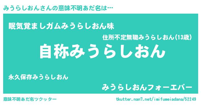| 男性向けラノベタイトル風あだ名 | 『Re:みうらしおんから始める異世界生活』 |