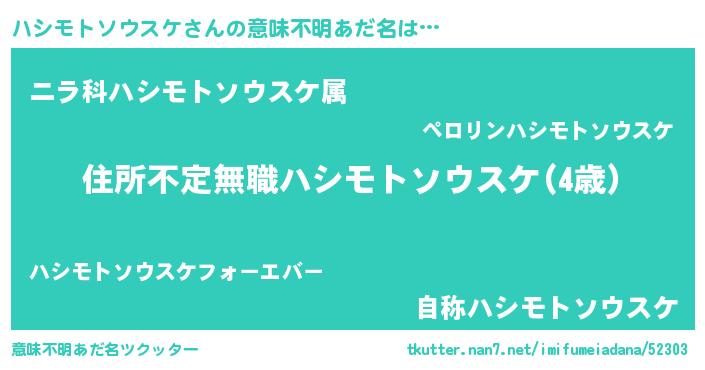 | 欧米人風あだ名 | 『ダレノガレハシモトソウスケ』 |