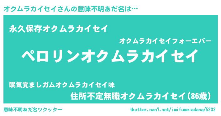 | ヒーロー風カッコイイあだ名 | 『スーパーオクムラカイセイ』 |