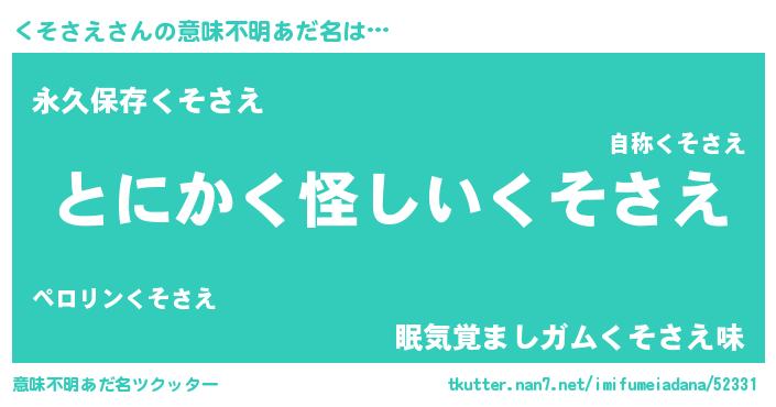 | 男性向けラノベタイトル風あだ名 | 『くそさえに滅ぼされるだけの簡単なお仕事です』 |