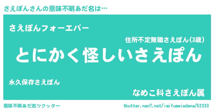 | ヒーロー風カッコイイあだ名 | 『黄金騎士サエ』『ウルトラさえぽんマン』 |