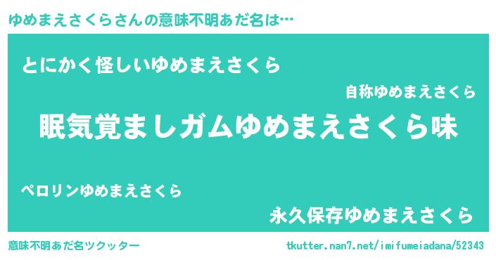 | ポケモン風あだ名 | 『ユックウザ』『ヒユメマエサクラ』 |