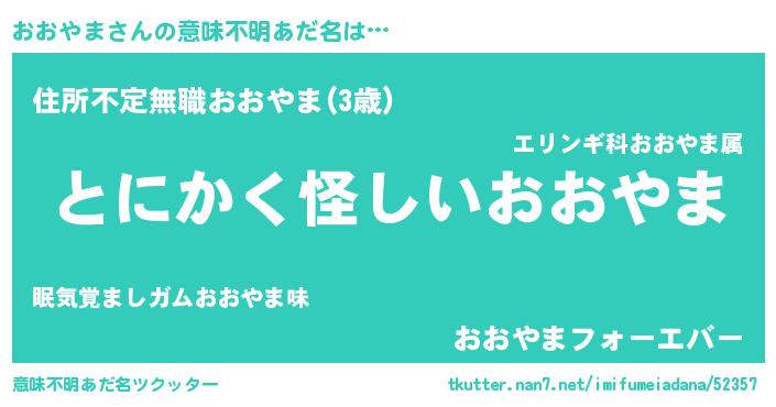 | 男性向けラノベタイトル風あだ名 | 『おおやまの嫁は女の子じゃないと思った?』 |