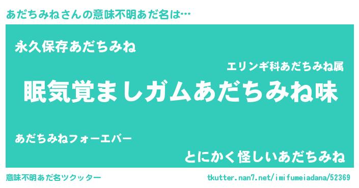 | 男性向けラノベタイトル風あだ名 | 『ノーゲーム・ノーアダチミネ』 |
