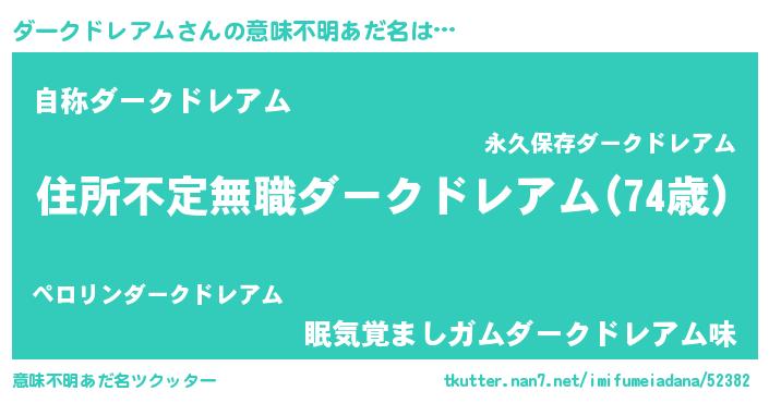 | ヒーロー風カッコイイあだ名 | 『仮面ダーダー』『ネオダークドレアム』 |