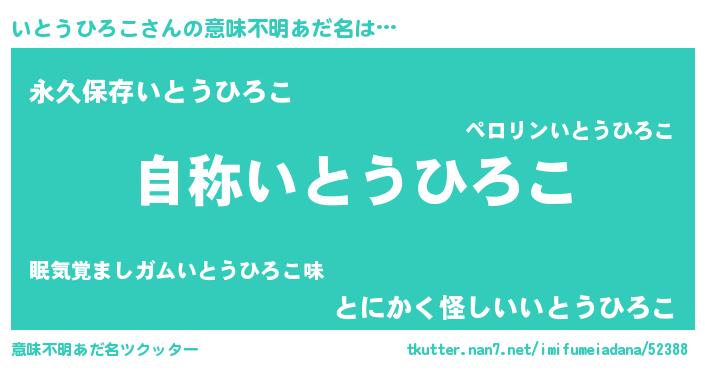 | 胡散臭い通販商品みたいなあだ名 | 『ガンによく効く高麗人参…その名も「いとうひろこ」』 |