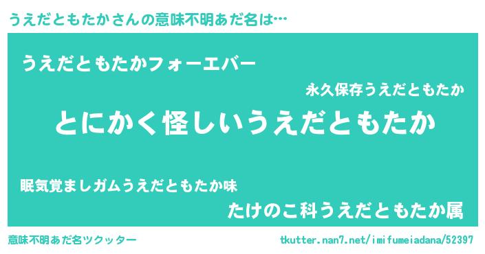 | 伝説のあだ名 | 『孤高の遊び人うえだともたか』 |