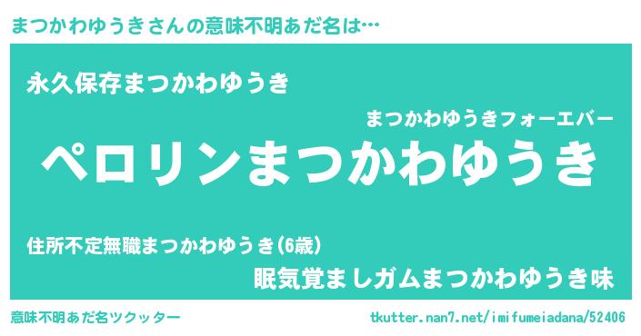 | ヘコむあだ名 | 『まつもー』『まつかわゆうき(苦笑)』 |