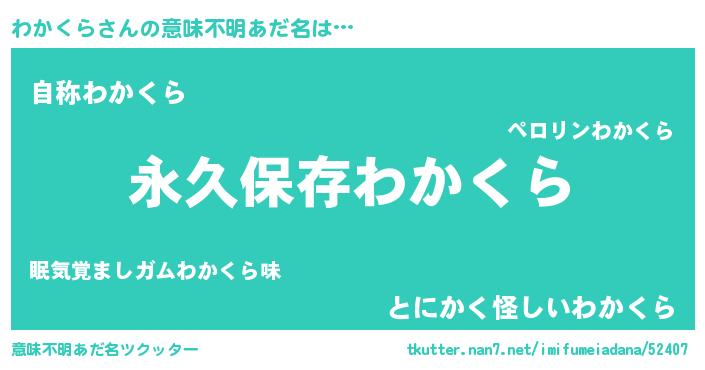 | 欧米人風あだ名 | 『わかくら・ステッグマイヤー』 |