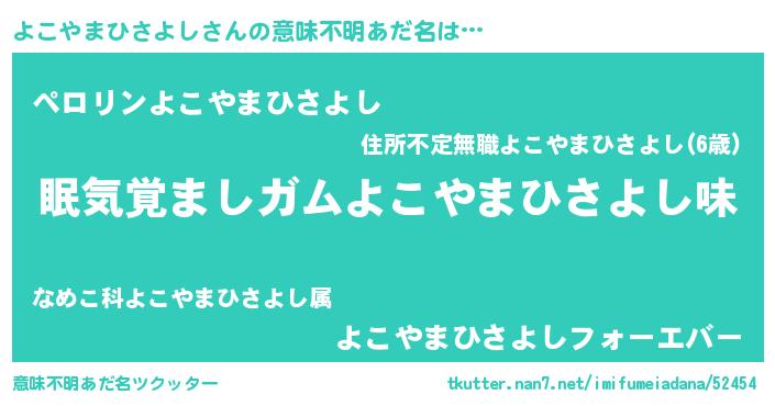 | 肩書あだ名 | 『よこやまひさよし助手』 |