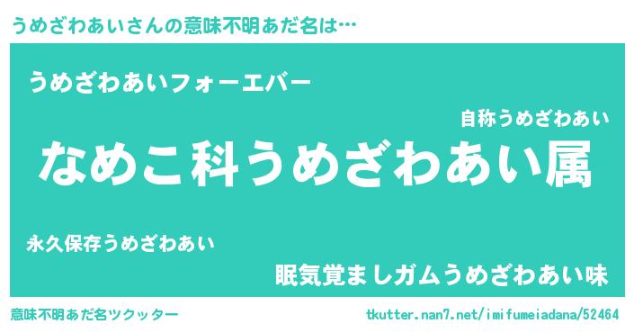 | ヘコむあだ名 | 『なまこ酢』『うめざわあい(苦笑)』 |