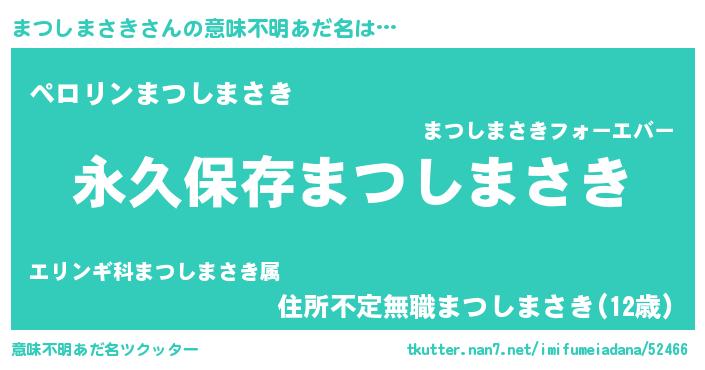 | 胡散臭い通販商品みたいなあだ名 | 『前代未聞の健康食品…その名も「まつしまさき」』 |