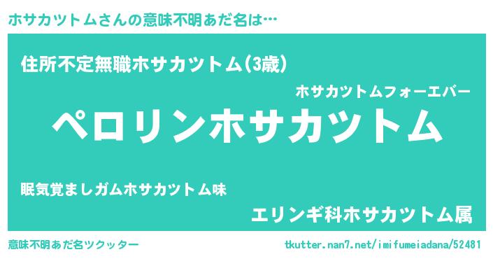 | 男性向けラノベタイトル風あだ名 | 『ホサカツトムアートオンライン』 |