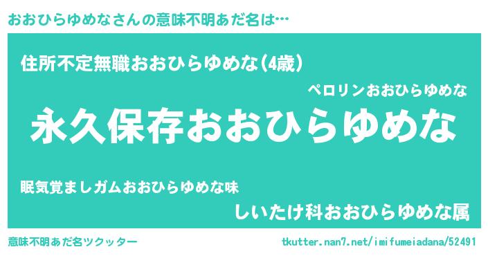 | 胡散臭い通販商品みたいなあだ名 | 『絶対に幸福をもたらす水素水…その名も「おおひらゆめな」』 |