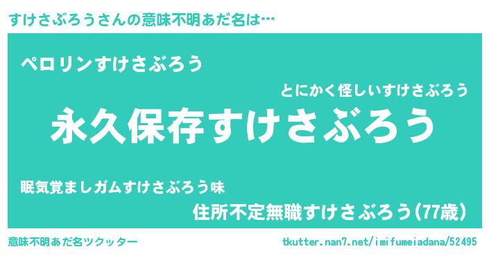| 胡散臭い通販商品みたいなあだ名 | 『来世でも幸せになれる健康食品…その名も「すけさぶろう」』 |
