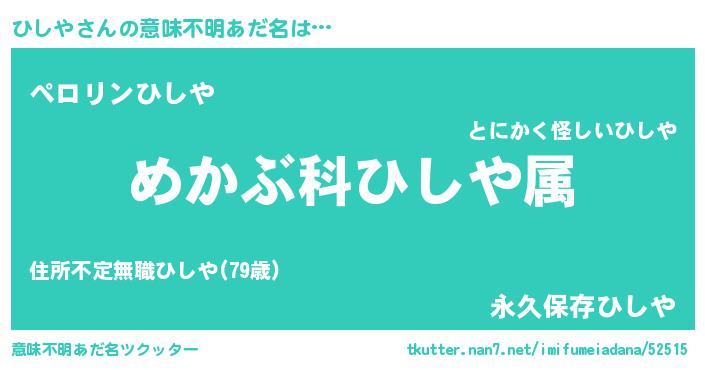 | 男性向けラノベタイトル風あだ名 | 『ヒシヤスレイヤー』『ひしやの憂鬱』 |