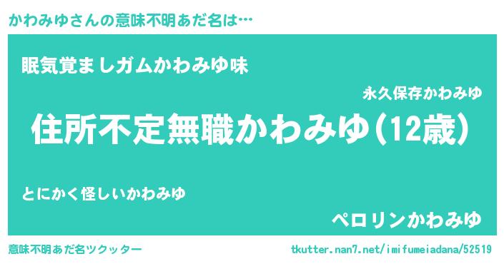 | 男性向けラノベタイトル風あだ名 | 『この素晴らしい世界にかわみゆを!』 |
