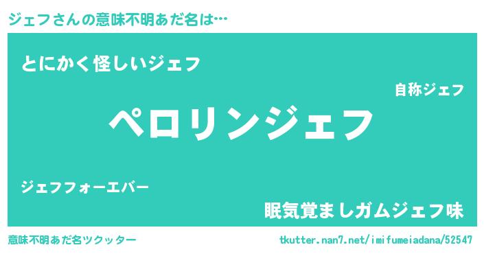 | ヘコむあだ名 | 『ジェふぇ~』『ジェぷりん』 |