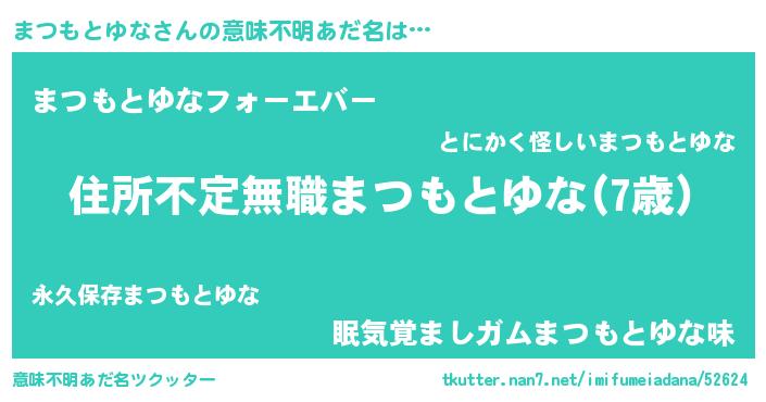 | 男性向けラノベタイトル風あだ名 | 『この素晴らしい世界にまつもとゆなを!』 |