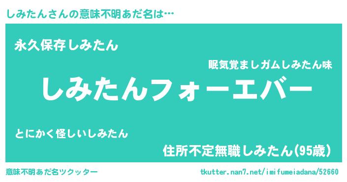 | ヒーロー風カッコイイあだ名 | 『ウルトラしみたんマン』『ネオシミタン』 |