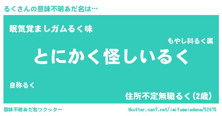 | 女子向けラノベタイトル風あだ名 | 『るくは平凡を望む』『死神るくの再婚』 |