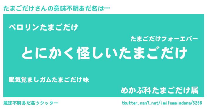 | ヒーロー風カッコイイあだ名 | 『魔戒騎士タマ』『スーパータマゴダケ』 |