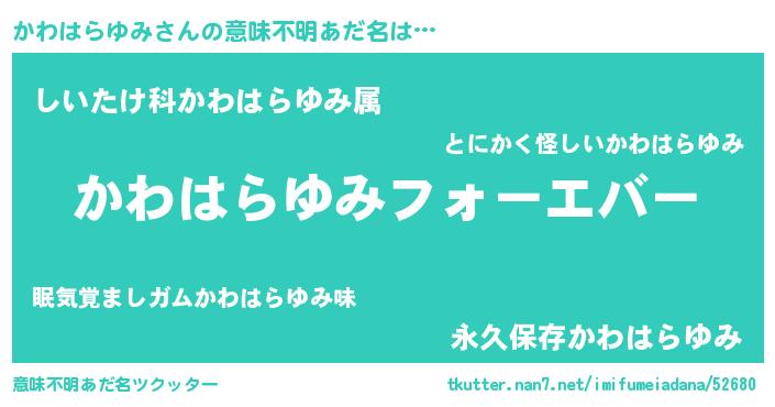 | ファンタジー風あだ名 | 『エターナルカワハラユミー』 |