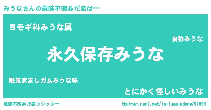 | ヘコむあだ名 | 『みうな(笑)』『みうっ子』 |