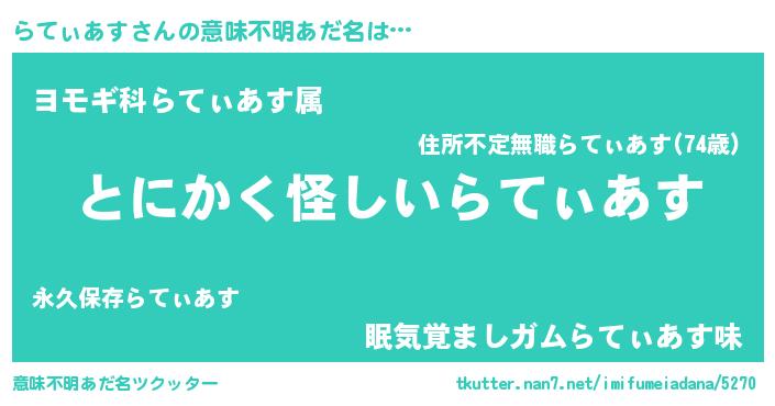 | 欧米人風あだ名 | 『ウサインらてぃあす』 |