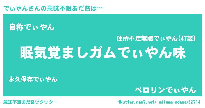 | 男性向けラノベタイトル風あだ名 | 『おまえをオタクにしてやるから、俺をでぃやんにしてくれ! 』 |