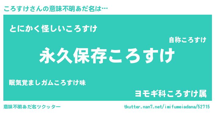 | 男性向けラノベタイトル風あだ名 | 『ころすけという概念が存在しない退屈な世界 』 |