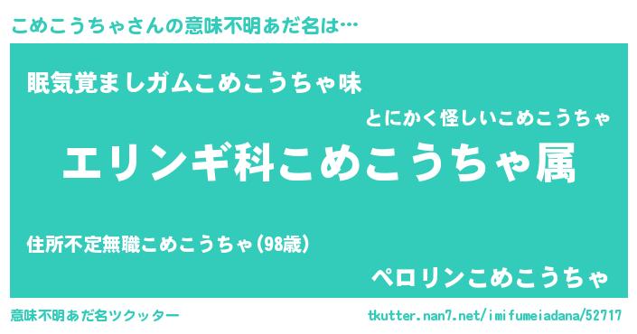 | 男性向けラノベタイトル風あだ名 | 『コメコウチャスレイヤー』 |
