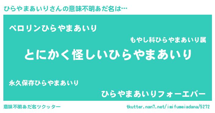 | ポケモン風あだ名 | 『ヒヒラヤマアイリ』『ヒラチュウ』 |