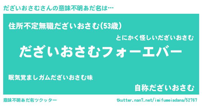 | 肩書あだ名 | 『だざいおさむ総理大臣』 |