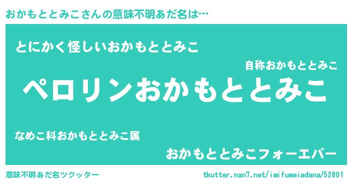 | 胡散臭い通販商品みたいなあだ名 | 『必ず成功する霊験あらたかなお札…その名も「おかもととみこ」』 |