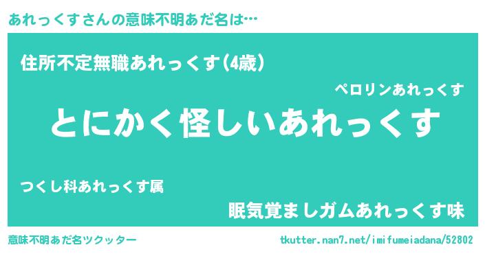 | 女子向けラノベタイトル風あだ名 | 『あれっくすは平凡を望む』 |
