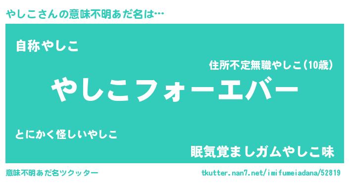 | 欧米人風あだ名 | 『やしこクリステル』『ダニエルやしこ』 |