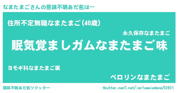 | 男性向けラノベタイトル風あだ名 | 『ノーゲーム・ノーナマタマゴ』 |