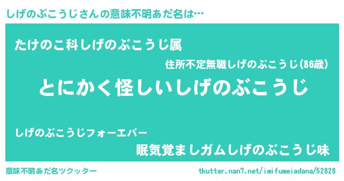 | 男性向けラノベタイトル風あだ名 | 『しげのぶこうじの嫁は女の子じゃないと思った?』 |