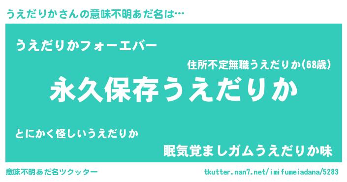 | 胡散臭い通販商品みたいなあだ名 | 『絶対に幸福をもたらす水素水…その名も「うえだりか」』 |