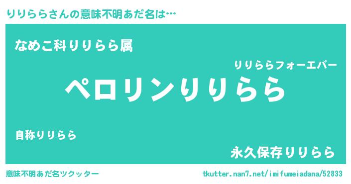 | 胡散臭い通販商品みたいなあだ名 | 『億万長者になれる水晶球…その名も「りりらら」』 |