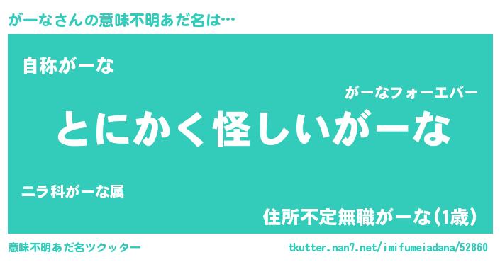 | 女子向けラノベタイトル風あだ名 | 『がーな様がみてる』『がーなの婚約者』 |