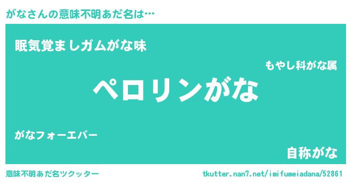 | ヒーロー風カッコイイあだ名 | 『スーパーガナ』『慈愛の使者がな』 |