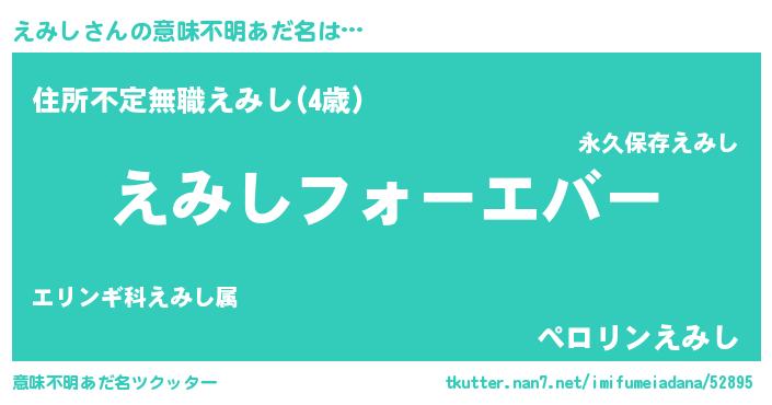 | 自動車の名前っぽいあだ名 | 『エクア』『ポエシェ』『エミティマ』 |