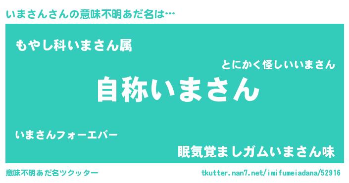 | ヒーロー風カッコイイあだ名 | 『究極戦士イマサン』『銀牙騎士イマ』 |