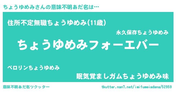 | 胡散臭い通販商品みたいなあだ名 | 『運命の人と巡り会える高級そうな壺…その名も「ちょうゆめみ」』 |