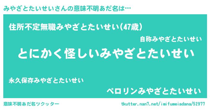 | 肩書あだ名 | 『みやざとたいせいリーダー』 |