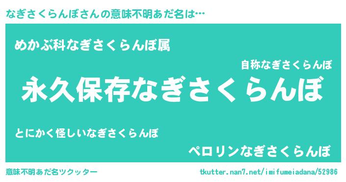 | 胡散臭い通販商品みたいなあだ名 | 『絶対に幸福をもたらす招き猫…その名も「なぎさくらんぼ」』 |