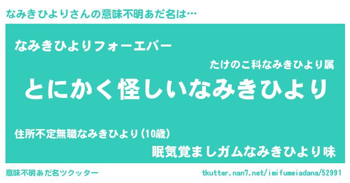 | 欧米人風あだ名 | 『ウサインなみきひより』 |