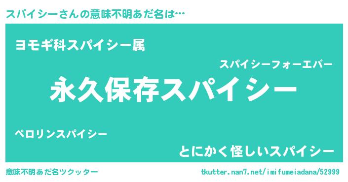 | 男性向けラノベタイトル風あだ名 | 『スパイシーという概念が存在しない退屈な世界 』 |